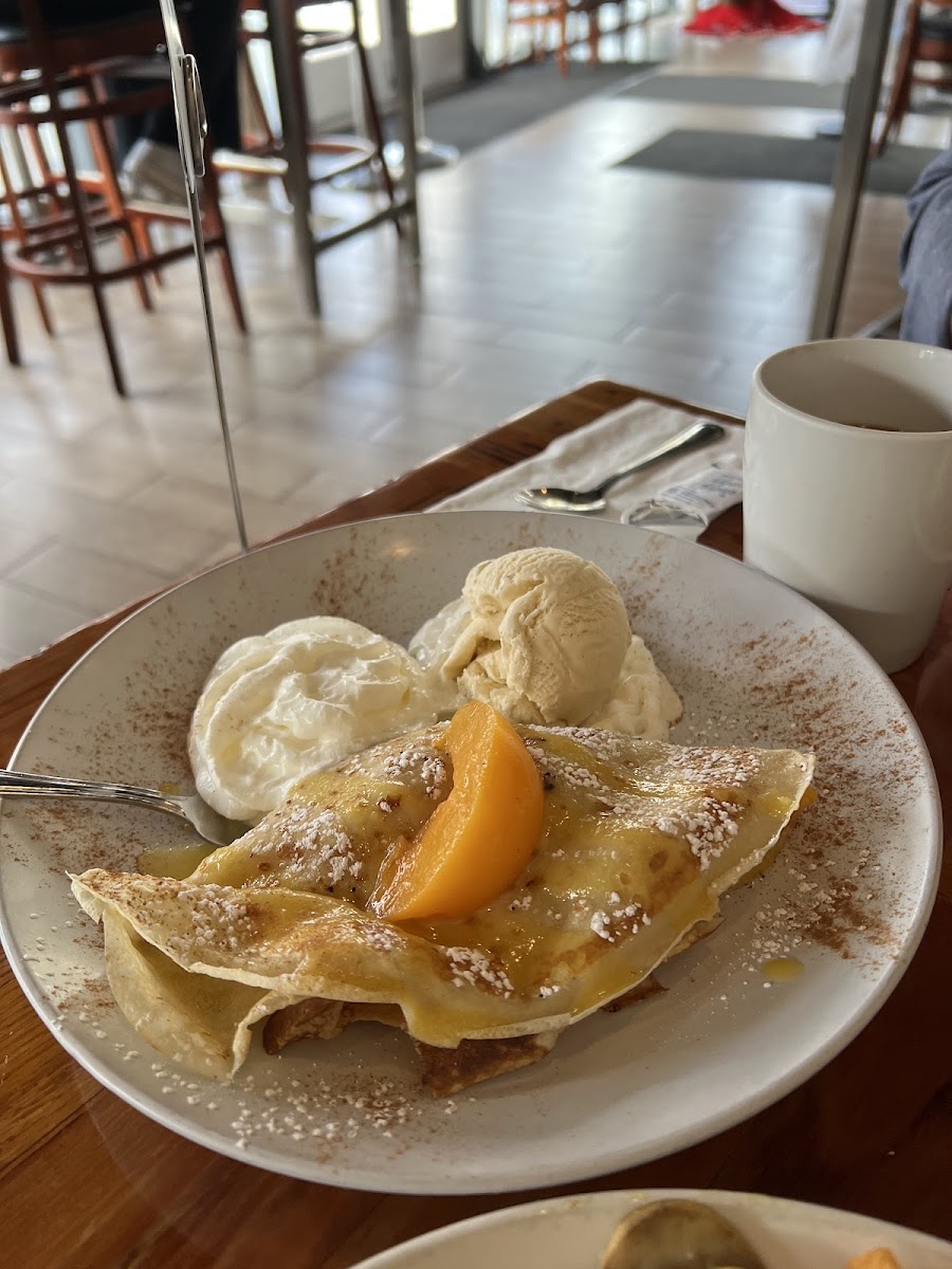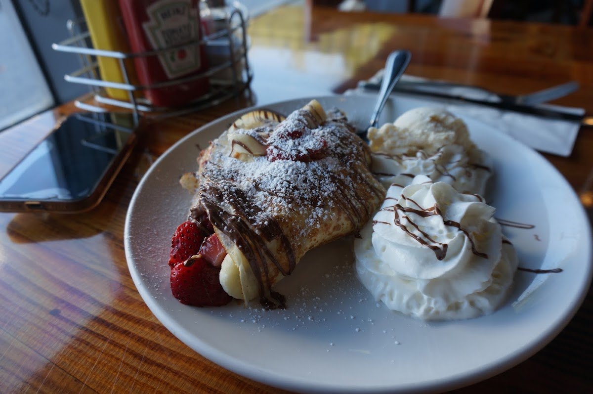 Great brunch spot. We had three dishes, and they were all excellent: eggs Benedict, a sweet crepe (which can be customized), and huevos rancheros. The taste was great, and portions, while large, were manageable. We also got hot chocolate and mocha, which were great too. Service was very quick and efficient, and we got our dishes very quickly after sitting down. The restaurant had plenty of seating areas, and did not feel crowded or cramped.