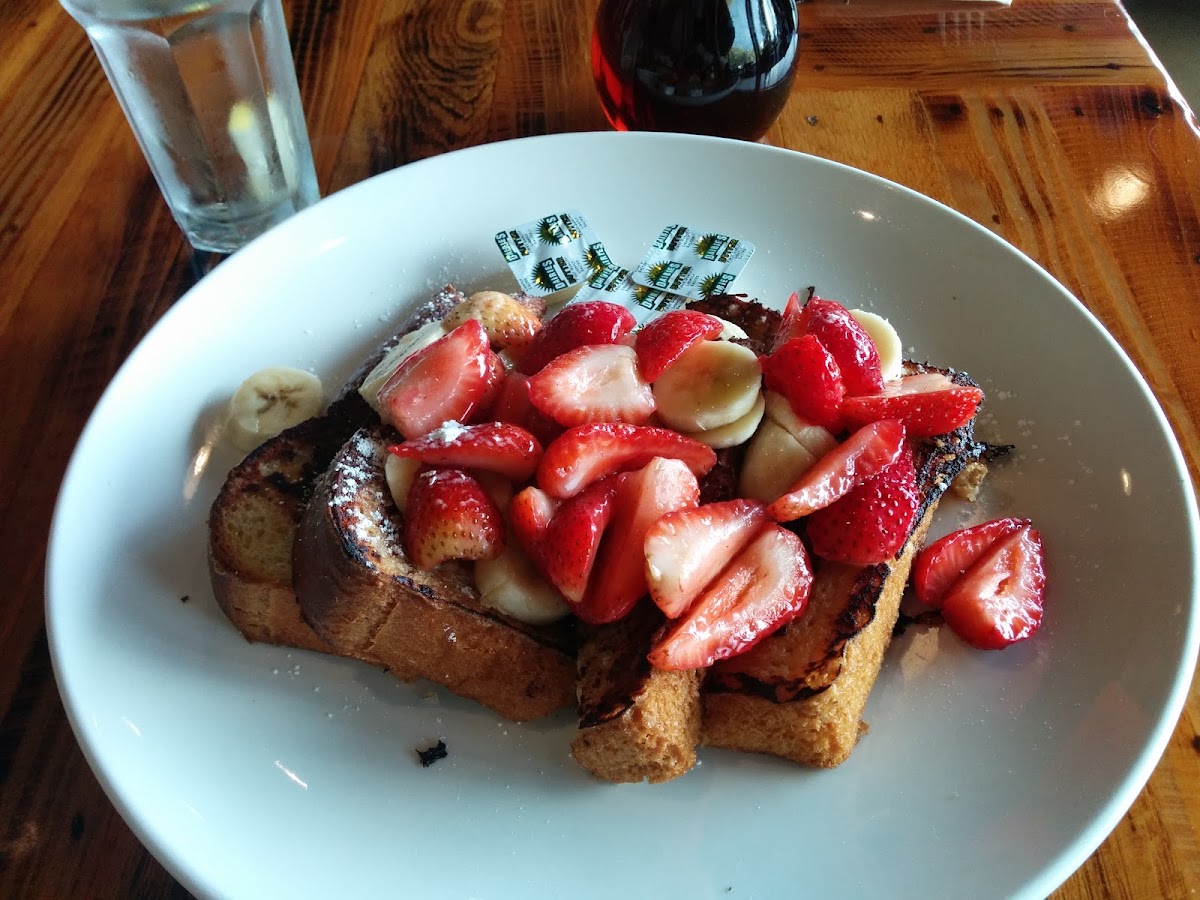 After a meeting at Philz Coffee, we decided to stop by Whispers Cafe and Creperie, just a short walk away. The dining area is spacious, making it a comfortable spot to relax and chat with friends. The ordering process was simple--place your order and pay at the counter. Service was good, and the menu is impressively extensive, offering a wide variety of options. Our food came out quickly, which was a nice touch. We ordered the French toast topped with strawberries and bananas. The syrup was on the side. It was tasty and satisfying, though not the best French toast I've ever had. It definitely "did the job." I also had 2 eggs over easy with a side salad. The eggs were cooked perfectly, and the salad was refreshing, adding a nice balance to the meal. While the food and experience were enjoyable, I found the pricing a bit steep for what we received. It's a decent spot if you're in the area, but I wouldn't go out of my way to return.