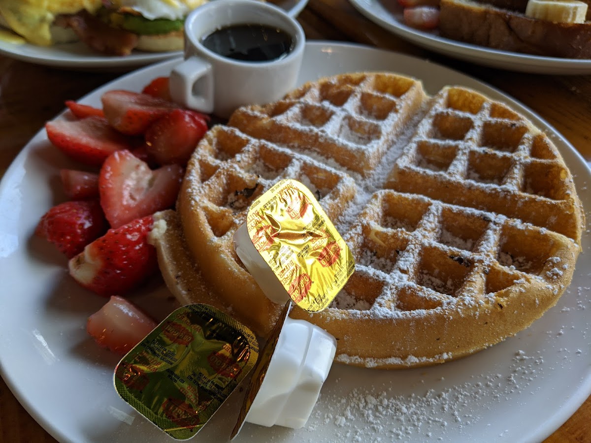 I met with a friend here to talk about life. First off, there's parking available right next to the cafe and a parking garage a couple of feet away. There is seating inside & outside. We sat inside. The customer waits in line to order their food, drinks, and pays for their meal. We were given a number to display on our table. I like the fact that we ordered and paid so we didn't have to wait for a server to bring us a check. Immediately after sitting down, they brought us our coffee. Our food came out within minutes. Their service was so quick! Once we were eating, they kept coming up to us to ask if we were okay. Great customer service. They even asked us if we were okay because we weren't eating lol; yet, we weren't eating because we were so enthralled in our conversation. It was so kind of them to check in on us and ensure there was nothing wrong with our food. I'd definitely recommend this cafe. If you've ever been to Davis, this place is a lot like Crepeville.